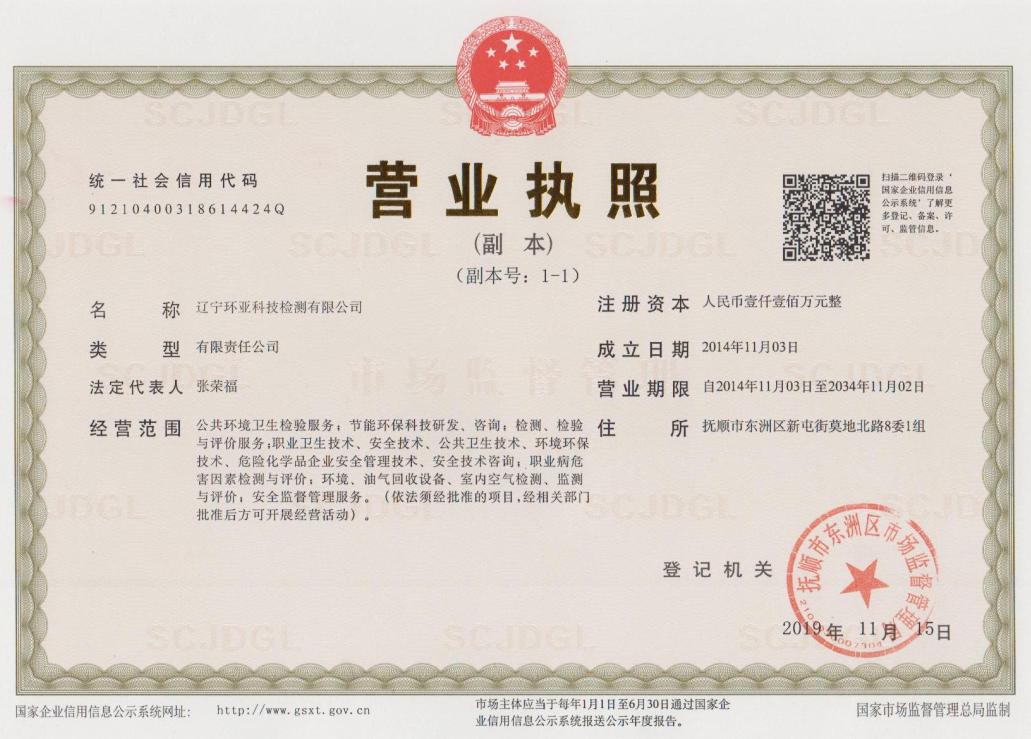遼寧環亞科技檢測有限公司成立于2014年11月3日,注冊資金1100萬元,位于遼寧省撫順市順城區規劃街3-64號樓3號門市、4號門市和5號門市,AAA信用單位,是一家集職業衛生、安全技術、環境監測為一體的專業技術服務公司。業務范圍涉及職業衛生檢測與評價、環境監測、安全技術咨詢服務、職業健康培訓等,業務遍布遼寧省14個地級市和16個縣級市。 公司建筑面積533平方米,擁有中心化驗室、有機前處理室、光譜室、色譜室、高溫室、天平室、試劑室、儀器設備室等共計230余平米的專業化實驗室;辦公室、辦公大廳、檔案室、會議室等300余平米的現代化辦公場所。公司已通過遼寧省市場監督管理局批準的中國計量認證CMA資質《檢測檢驗機構資質認定證書》(證書編號:21061205D014),資質有效期至2027年11月8日,具備向社會出...【更多】